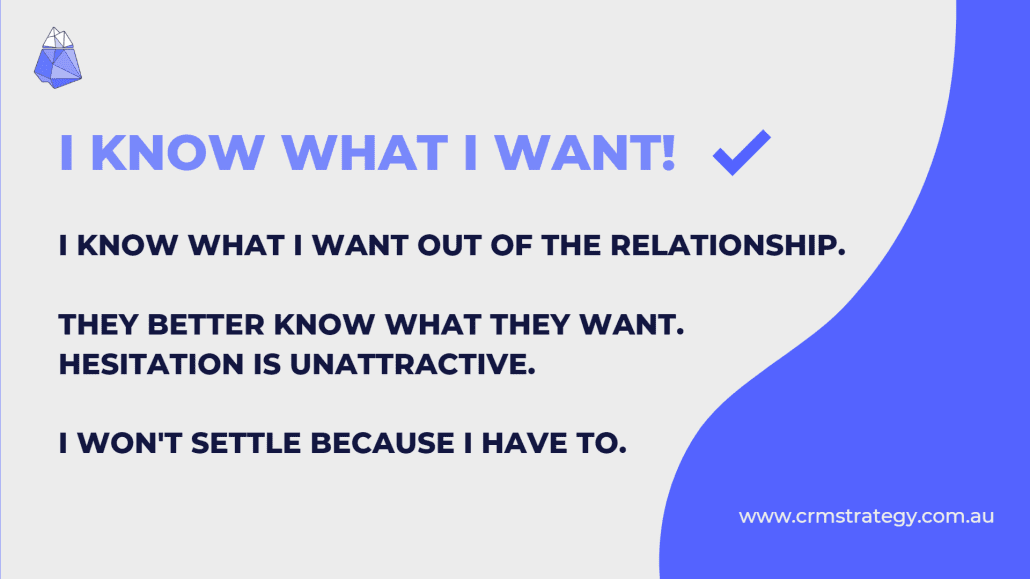 I KNOW WHAT I WANT OUT OF THE RELATIONSHIP.